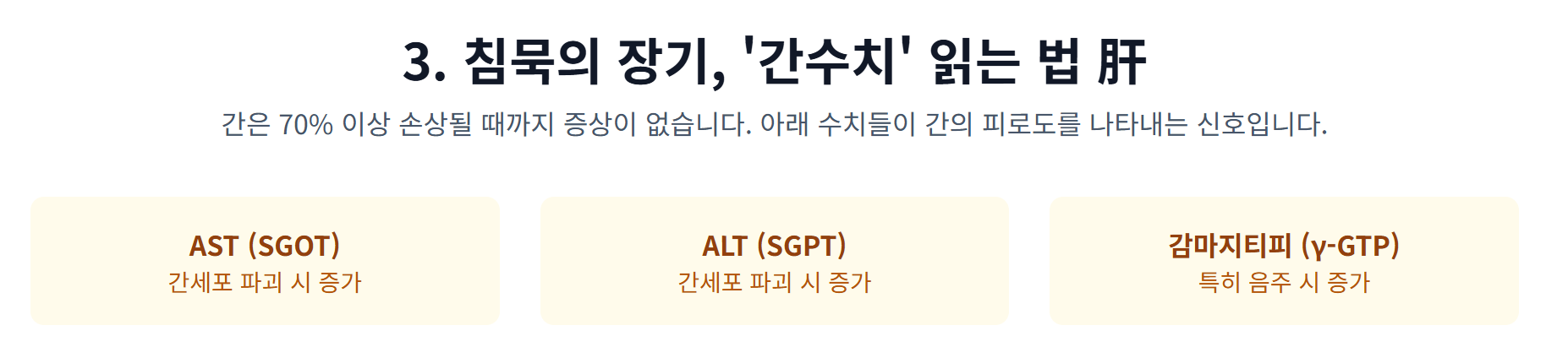 💥 AST/ALT는 간세포가 파괴될 때, 🍺 감마지티피는 특히 술을 마셨을 때 수치가 올라갑니다. 모두 간의 피로도를 나타내는 신호입니다.