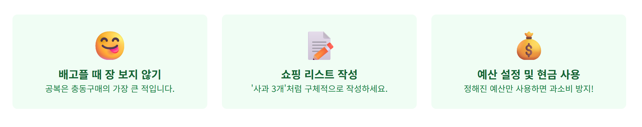 오늘 배운 '방어 꿀팁'을 기억하고 실천한다면, 충동구매는 줄이고 만족스러운 소비는 늘어날 거예요. 현명한 소비 생활을 응원합니다!