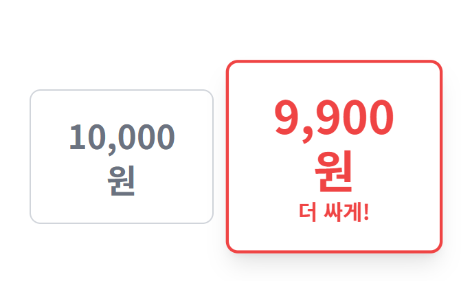 우리 뇌는 숫자를 왼쪽부터 인식해, 10,000원과 9,900원을 '만원'과 '구천원대'라는 심리적 차이로 받아들여 훨씬 저렴하다고 느낍니다.