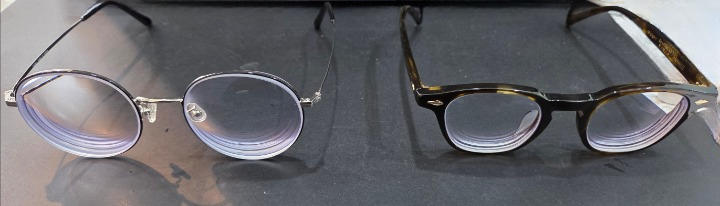얼마 전 지인분의 매장에 놀러 갔는데 손님분께서 같은 도수의 안경으로 2가지 타입의 안경을 해가시는 분이 계셔서 그분께 허락을 받고 사진을 찍어봤습니다. 사진에서 보이는 것처럼 같은 렌즈도 안경테에 따라 이렇게 달라집니다.
