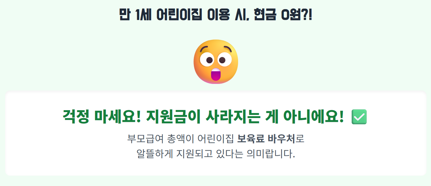 만 1세 (12~23개월) | 월 50만 원 | 현금 0원 + 보육료 바우처 |