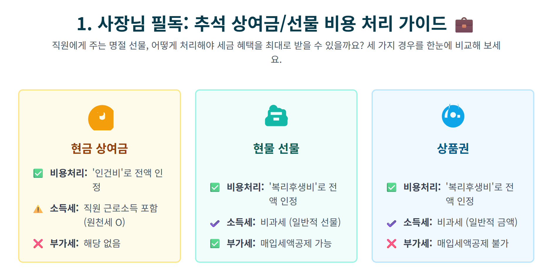 1부. 사장님 필독: 추석 상여금/선물 비용 처리와 세금은? 💼
